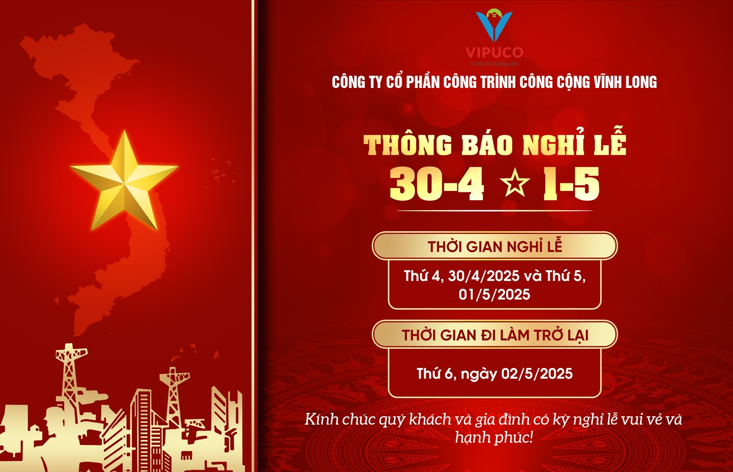 Thông báo nghỉ lễ ngày Chiến thắng 30/4 và ngày Quốc tế lao động 1/5